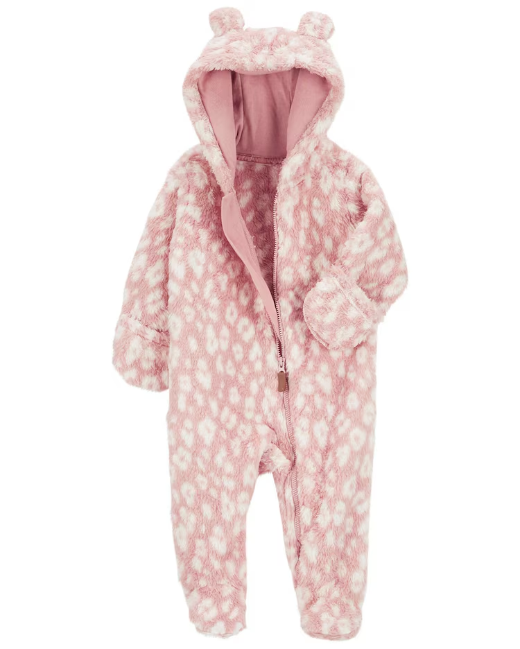 Macacão bebê peluciado com capuz de orelha onça rosa | Carter’s